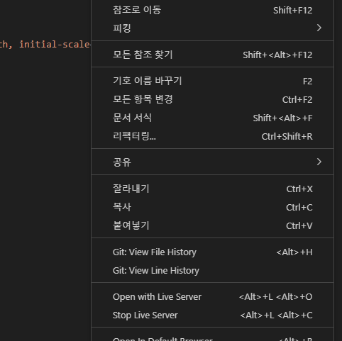 - body 에 내용 작성을 완료했으면 우클릭후 Open with Live Server를 실행한다, 단축키는 Alt +L -> Alt + O